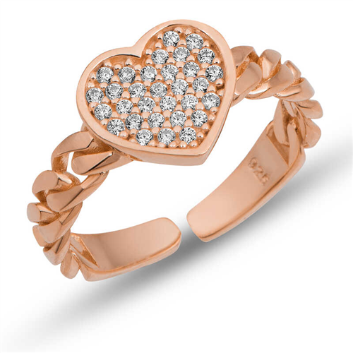 Silver Adjustable Rose Heart Women's RingThe heart symbol has always been the symbol of unconditional love and passion. In religious teachings, the power of the heart is limitless. Because the heart is the house of the Creator and our gateway to reality that opens to the universe. This stylish silver heart ring is a perfect option for a birthday gift, Valentine's Day gift or a gift for mothers on special occasions. The silver rose heart women's ring is made of 925 sterling silver. This ring is rose plated. Rose plated silver women's ring models preserve their shine for a long time. The stones on it are zircon. As with all our silver women's ring models, the silver adjustable rose heart women's ring model is also handmade. Due to silver and precious stones, there may be a ± 10% deviation in the average product weight. Width: 2.10 cmLength: 2.10 cmAvg. Weight: 2.40 gr.