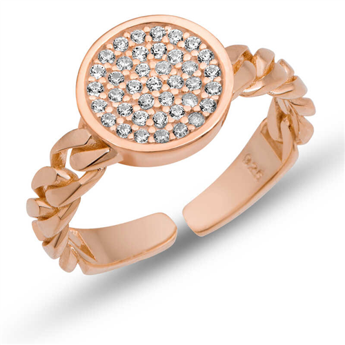 Silver Adjustable Rose Round Zircon Stone Women's RingThis ring model, made of zircon stones on silver, is a stylish accessory that you can use at any time of the day. The round zircon stone women's ring, which you and your loved ones will enjoy wearing, will be one of the best gifts for your loved one. The ring is made of 925 sterling silver. Rose plated silver. Rose plated silver women's rings preserve their shine for a long time and delay oxidation. As with all silver women's rings, the silver adjustable rose women's ring model is handmade. Due to silver and precious stones, there may be ± 10% deviation in the average product weight.Width: 2.10 cmLength: 2.20 cmAvg. Weight: 2.80 gr.