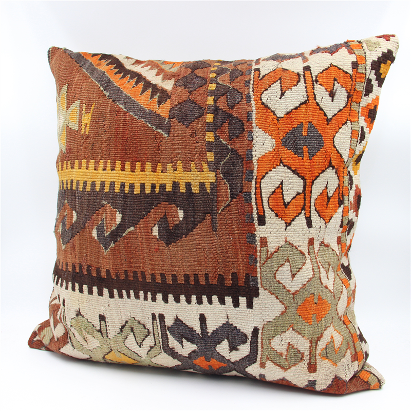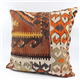 Kilims used in our products are old and genuine. These Kilim Cushions are made with pieces of carpets and kilims joined to make Kilim Cushion Covers. Kilim Cushion Covers can be made for order for any size. Back has cotton with a zipper