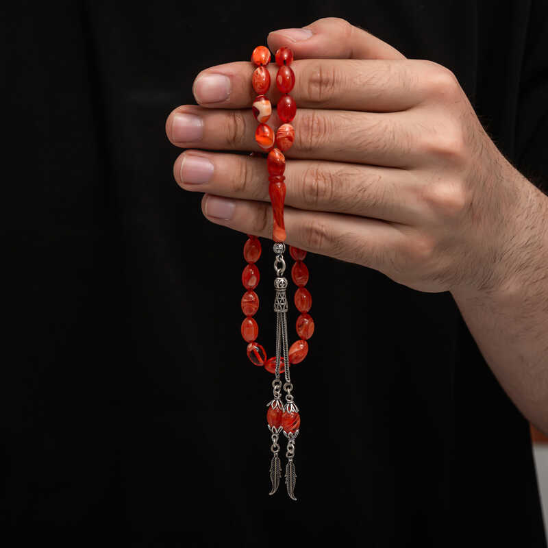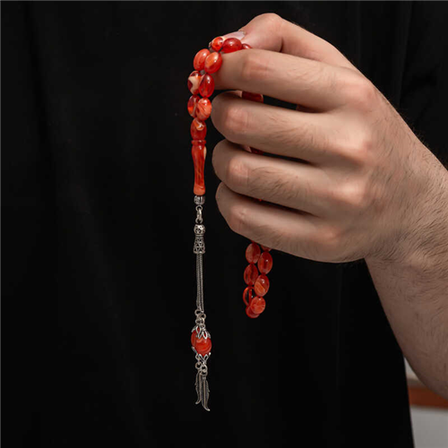 Silver Tassel Pressed Amber Prayer Beads Amber is a substance formed by the accumulation of pine tree resin underground over many years. It is almost the same hardness as stone, but its density is lower. It emits a pine scent. It is a valuable substance because its formation takes a long time and cannot be made artificially. Pressed amber, on the other hand, is a material that bears the characteristics of amber, resembles it in appearance but is not real. Various materials have been produced from amber in our country and in many parts of the world. Prayer beads are the most commonly produced in our country. Amber prayer beads give off an amber-like scent and change color as they are warmed in the hand. They come in many colors. There are even amber prayer beads that are a combination of two colors. They are usually used with a silver tassel or can be used systematically. Our country's distinguished rosary masters frequently craft this material, creating various works of art. These rosaries are also bought and sold by collectors. The pressed amber rosary with silver tassels is a very elegant type of rosary that can be used in everyday life. A must-have gift for special occasions, pressed amber rosaries are a great choice for men on special occasions like birthdays, Valentine's Day, and Father's Day. The silver tasseled squeezed amber prayer beads model is manufactured entirely by hand, as are other amber prayer beads models. Note: Different models of prayer beads' silver tassel ends are sent. Bead Width: 0.70 cm Bead Length: 1.00 cm Prayer Length: 32 cm Average Weight: 18.30 gr