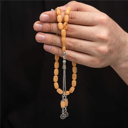 Silver Tassel Pressed Amber Prayer Beads Amber is a substance formed by the accumulation of pine tree resin underground over many years. It is almost the same hardness as stone, but its density is lower. It emits a pine scent. It is a valuable substance because its formation takes a long time and cannot be made artificially. Pressed amber, on the other hand, is a material that bears the characteristics of amber, resembles it in appearance but is not real. Various materials have been produced from amber in our country and in many parts of the world. Prayer beads are the most commonly produced in our country. Amber prayer beads give off an amber-like scent and change color as they are warmed in the hand. They come in many colors. There are even amber prayer beads that are a combination of two colors. They are usually used with a silver tassel or can be used systematically. Our country's distinguished rosary masters frequently craft this material, creating various works of art. These rosaries are also bought and sold by collectors. The pressed amber rosary with silver tassels is a very elegant type of rosary that can be used in everyday life. A must-have gift for special occasions, pressed amber rosaries are a great choice for men on special occasions like birthdays, Valentine's Day, and Father's Day. The silver tasseled squeezed amber prayer beads model is manufactured entirely by hand, as are other amber prayer beads models. Note: Different models of prayer beads' silver tassel ends are sent. Bead Width: 0.80 cm Bead Length: 1.00 cm Prayer Length: 32 cm Average Weight: 19.80 gr
