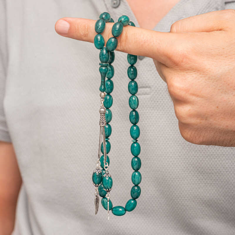 Silver Tasseled Pressed Amber Prayer Beads Amber is a natural stone used for healing and protection throughout history. It is also widely preferred in jewelry such as necklaces or prayer beads. Amber stone is known for its energy balancing and healing potential. This prayer beads symbolizes a person's spiritual purification, protection and healing desires. It also represents traditional and cultural values. This prayer beads can be found among the special gift options for your loved ones with both its usefulness and aesthetic appearance. The pressed amber prayer beads model is completely handmade like other amber prayer beads models. Note: The silver tassel ends of the prayer beads are sent in different models. Grain Width: 0.80 cm Bead Size: 1.00 cm Prayer Length: 30 cm Average Weight: 25.00 gr