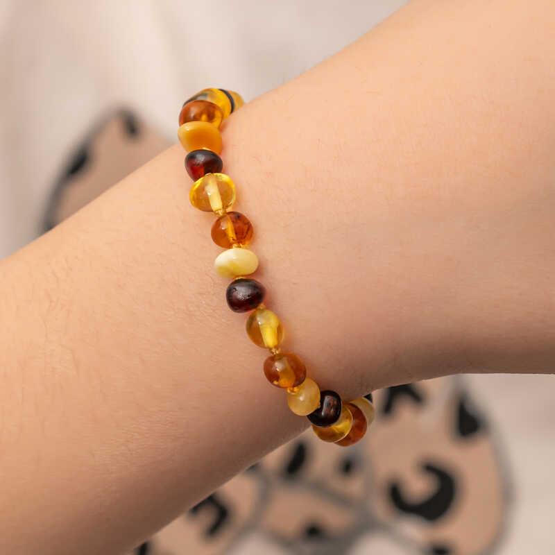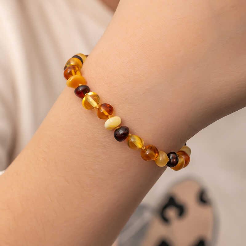 Baby Drop Amber Bracelet Amber has both physical and metaphysical effects. Amber, which contributes significantly to the health of babies in particular, soothes throat and ear aches, which are common in babies. The pain and fussiness symptoms of the teething period, one of the most important problems for babies, are also significantly alleviated thanks to amber. It is also known as the money stone. It is believed to increase abundance. When used as an amber bracelet, it provides relief from complaints such as asthma, allergies, goiter, and thyroid. At the same time, the pain-relieving effect of amber is good for complaints such as back pain, headaches, and migraines. Amber bracelets are effective for joint and rheumatic pain. They also have a protective effect against negative energies. Amber acts just like an evil eye bead. It works through skin contact and skin heat. Amber bracelets have a localized effect. It is made of silk thread, and each bead is individually knotted. Amber bracelets have a hidden plastic screw clasp on the back. It takes between 24 and 72 hours for amber to show its effects, depending on the person's body and growth spurt. It is suitable for babies aged 0-5. Amber shows its effect with use and contact with the skin. Bracelets are among the most popular ornaments for everyone. Amber will be an accessory that babies who do not compromise on elegance will love to use. All of our products are handmade and there may be ± 10% deviation in product weight due to precious stones. Bracelet Bead Diameter: 0.60 cm Bracelet Length: 15 cm Weight: 2.80 gr