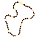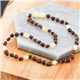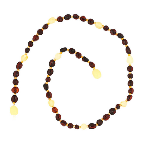 Baby Drop Amber Teething Necklace: Amber teething necklaces are typically worn by babies starting around the fourth month. They help children navigate the teething period more comfortably, especially when experiencing symptoms related to teething, such as drooling, pain, loss of appetite, and insomnia. They work through skin contact and skin warmth. Amber necklaces have a localized effect. They are made of silk thread, with individual knots between each bead. Amber necklaces have a hidden plastic screw clasp on the back. Amber takes between 24 and 72 hours to take effect, depending on the individual's body and growth spurt. Amber improves with use and skin contact. The average standard size for babies aged 0-3 is 32cm-34cm. Necklaces are among the most popular adornments for everyone, and we believe this fascination with adornment begins at a young age. We offer a variety of ornate and stylish jewelry styles that spark an interest in adornment at a young age. Amber will be an accessory that little ones who don't compromise on elegance will love to wear. All of our products are handmade, and due to the presence of precious stones, there may be a ±10% deviation in product weight. Length: 34 cm Grain Size: 0.50 cm Weight: 4.9 g
