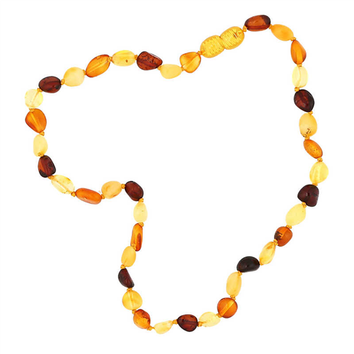 Baby Drop Amber Teething Necklace: Amber teething necklaces are typically worn by babies starting around the fourth month. They help children navigate the teething period more comfortably, especially when experiencing symptoms related to teething, such as drooling, pain, loss of appetite, and insomnia. They work through skin contact and skin warmth. Amber necklaces have a localized effect. They are made of silk thread, with individual knots between each bead. Amber necklaces have a hidden plastic screw clasp on the back. Amber takes between 24 and 72 hours to take effect, depending on the individual's body and growth spurt. Amber improves with use and skin contact. The average standard size for babies aged 0-3 is 32cm-34cm. Necklaces are among the most popular adornments for everyone, and we believe this fascination with adornment begins at a young age. We offer a variety of ornate and stylish jewelry styles that spark an interest in adornment at a young age. Amber will be an accessory that little ones who don't compromise on elegance will love to wear. All of our products are handmade, and due to the presence of precious stones, there may be a ±10% deviation in product weight. Length: 34 cm Grain Size: 0.90 cm Weight: 5.6 g
