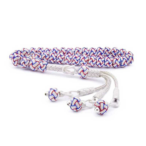 Blue Red White Silver Trabzon Kazaziye Prayer Beads The completely handcrafted and very valuable Kazaz prayer beads model is made of 925 sterling silver. Silver plating is done on silver. Silver-plated Silver Kazaziye prayer beads models preserve their shine for a long time and oxidation is delayed. The Blue Red White Silver Trabzon Kazaziye Prayer Beads model is a perfect option for a birthday gift, a Valentine's Day gift or on special occasions. Due to silver and precious stones, there may be ± 10% deviation from the average product weight. Width: 0.80 cm Length: 20.50 cm Average Weight: 27.00 gr.