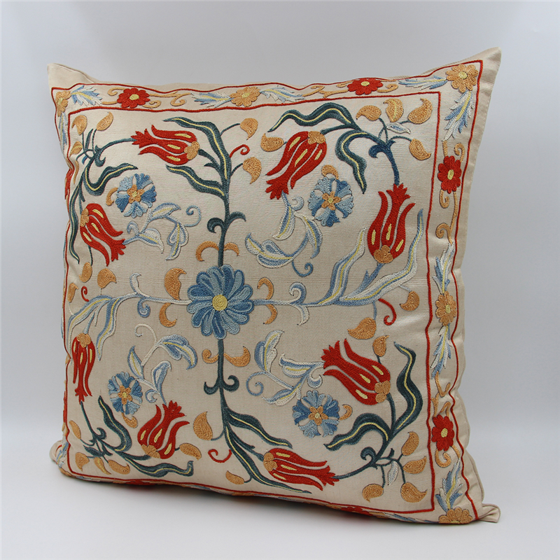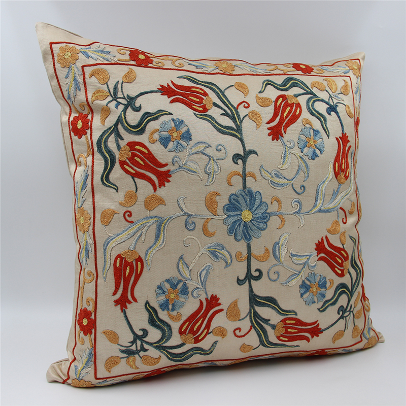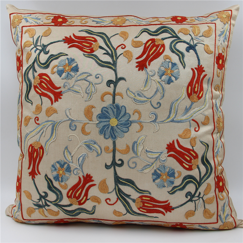 Silk Suzani Cushion Cover made from Uzbek hand embroidery Silk on Silk Suzani, View one of the most Suzani Cushion Pillows with largest selection of Suzani Rugs at for UK and worldwide delivery.