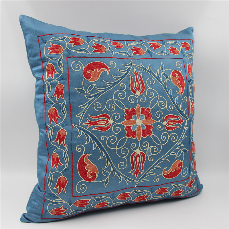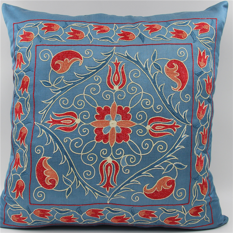 Silk Suzani Cushion Cover made from Uzbek hand embroidery Silk on Silk Suzani, View one of the most Suzani Cushion Pillows with largest selection of Suzani Rugs at for UK and worldwide delivery.