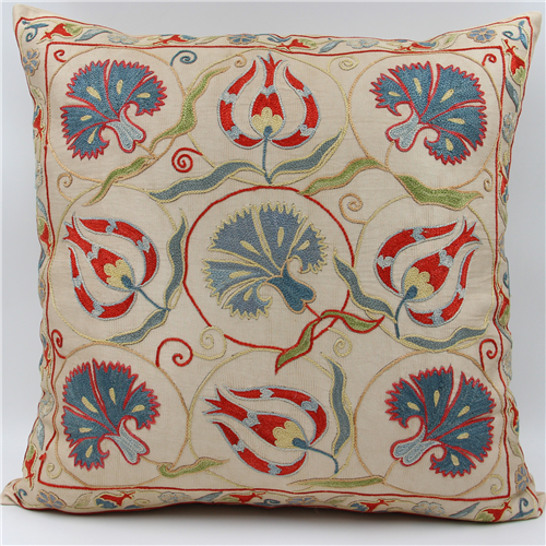 Silk Suzani Pillow Cover made from Uzbek hand embroidery Silk on Silk Suzani, View one of the most Suzani Cushion Pillows with largest selection of Suzani Rugs at for UK and worldwide delivery.