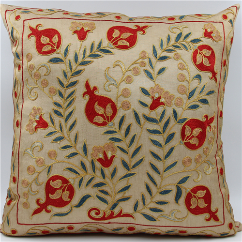 Silk Suzani Cushion Cover made from Uzbek hand embroidery Silk on Silk Suzani, View one of the most Suzani Cushion Pillows with largest selection of Suzani Rugs at for UK and worldwide delivery.