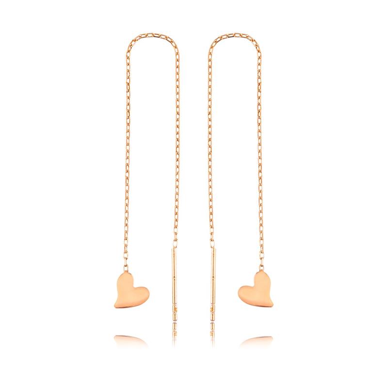 Silver Chain Heart Earrings Let your love come to life on the skin of the woman you love with these heart-shaped women's earrings that express love with their heart patterns. These stylish earrings are made of 925 sterling silver. The silver heart-shaped women's chain earrings, which will be enjoyed by both you and your loved ones, are a perfect option for a birthday gift, a Valentine's Day gift, or a gift for mothers on special occasions. The silver is rose gold-plated. Rose gold-plated women's earrings preserve their shine for a long time, turn the silver into a pink color, and oxidation is delayed. The stones on them are zircon. Like all silver women's earrings, the silver chain heart earrings are handcrafted. Due to silver and precious stones, there may be a ± 10% deviation in the specified product weight.