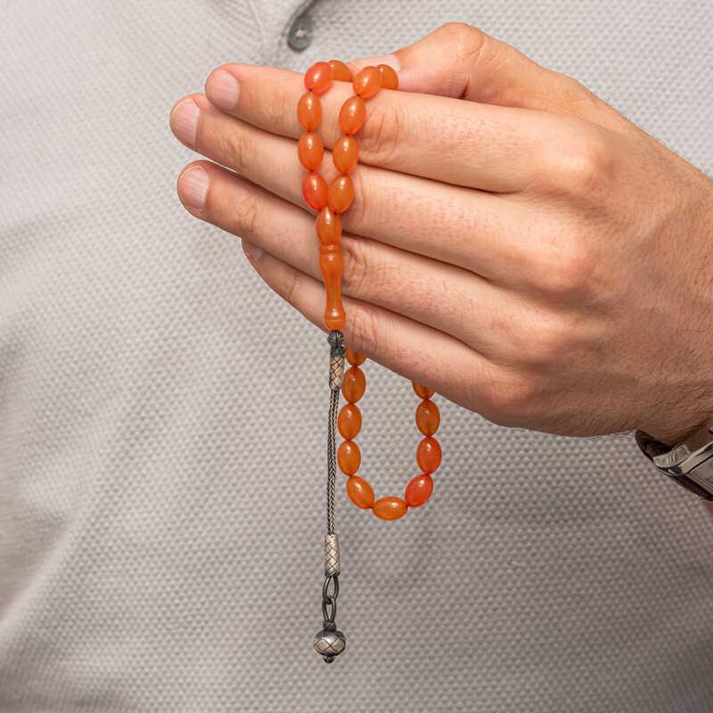 Silver 1000 Carat Kazaz Tasseled Tightened Amber Prayer Beads