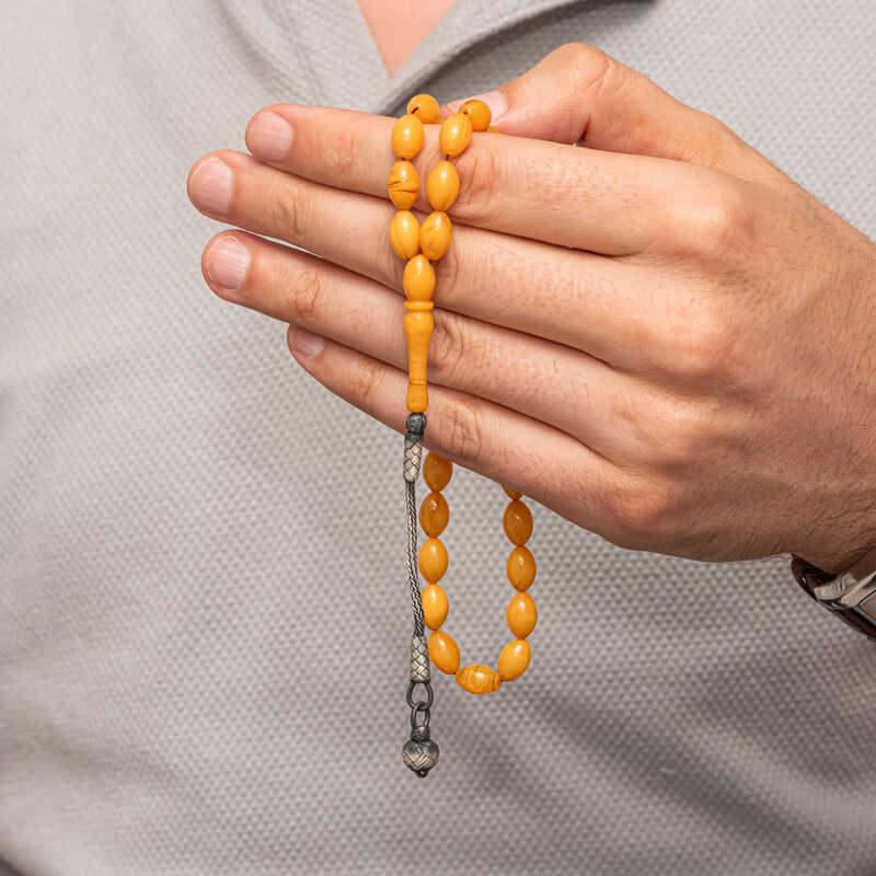 Gümüş Kazaz Püsküllü Sıkma Kehribar Tesbih