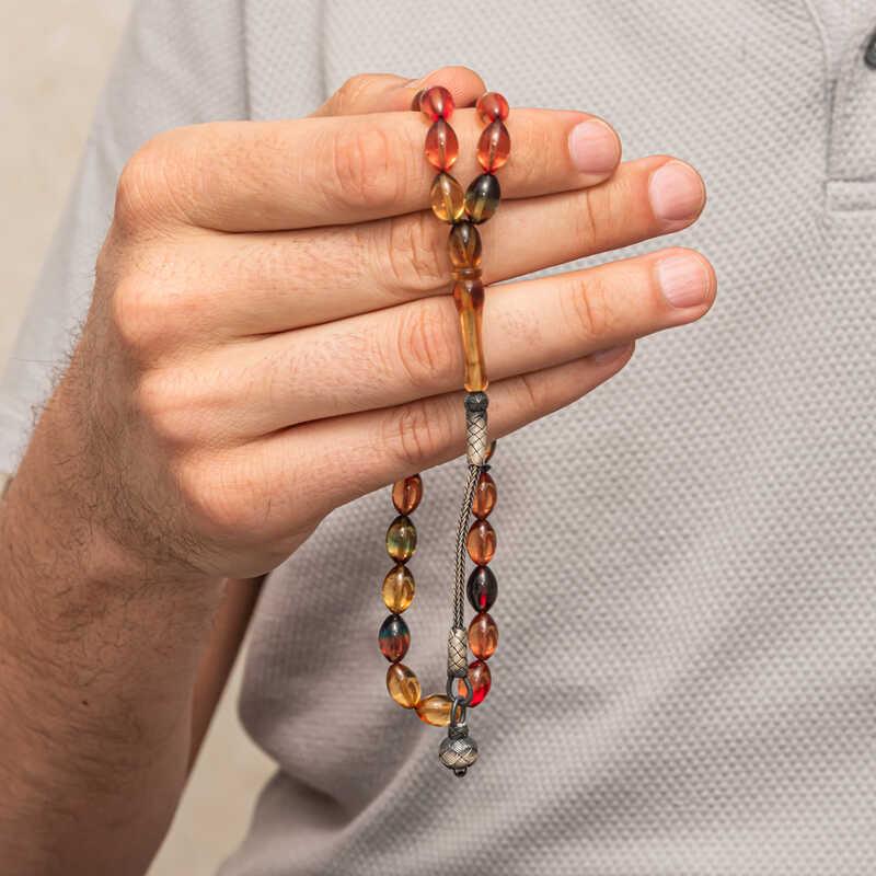 Gümüş Top Kazaz Püsküllü Sıkma Kehribar Tesbih