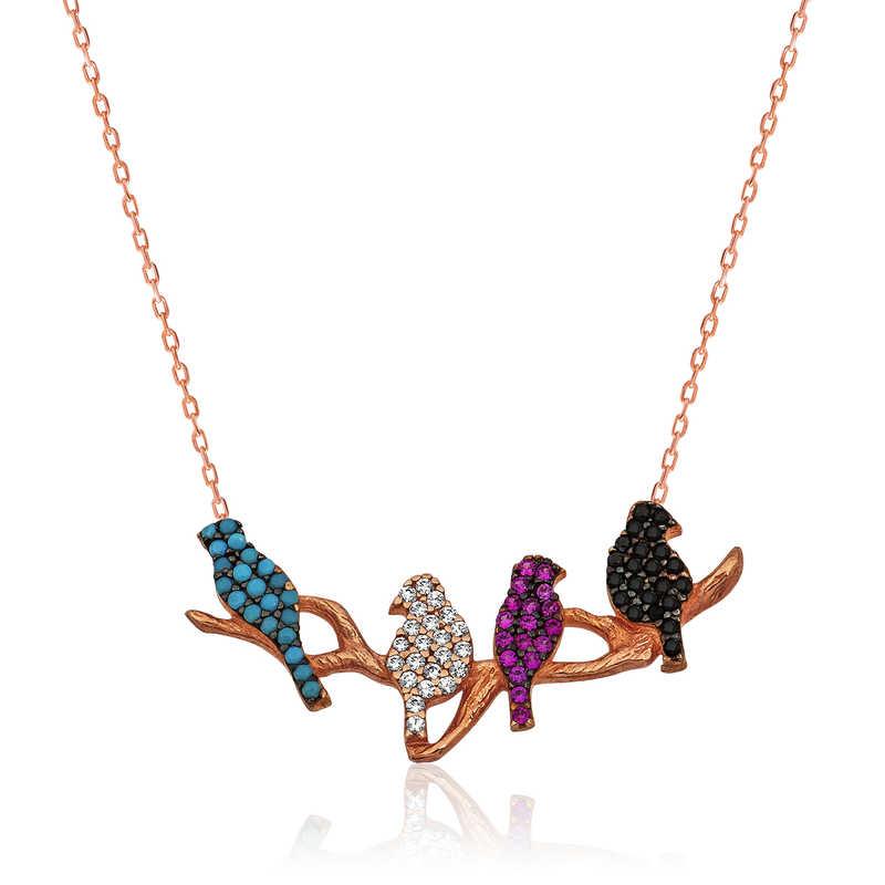 Silver Wren Women's Necklace Let this stylish necklace, which reflects the purity and cleanliness of wrens, come to life on your skin... This sentimental necklace is a perfect option for special occasions as a birthday gift, Valentine's Day gift or Mother's Day gift. This stylish design is made of 925 sterling silver. This necklace is plated with rose gold. Rose gold-plated silver necklaces preserve their shine for a long time, turn the silver color to pink and delay oxidation. The stones on it are zircon. As with all silver women's necklaces, the silver Wren women's necklace model is also handmade. Due to silver and precious stones, there may be a ± 10% deviation from the average product weight.