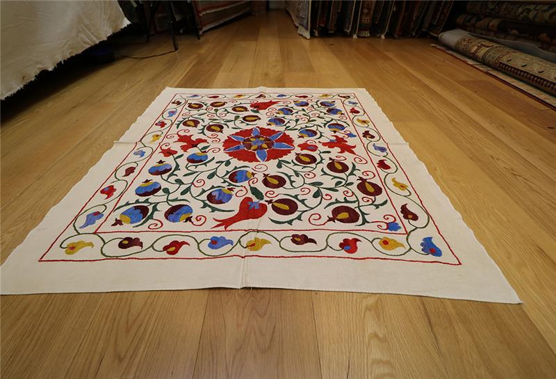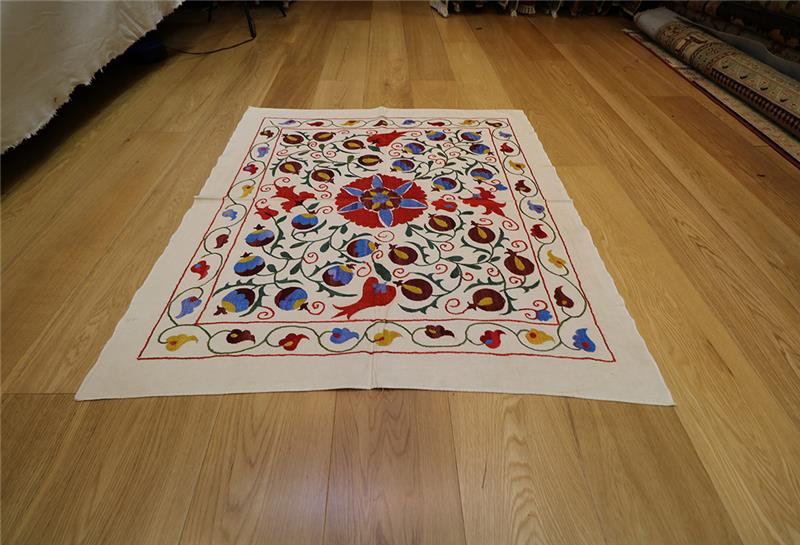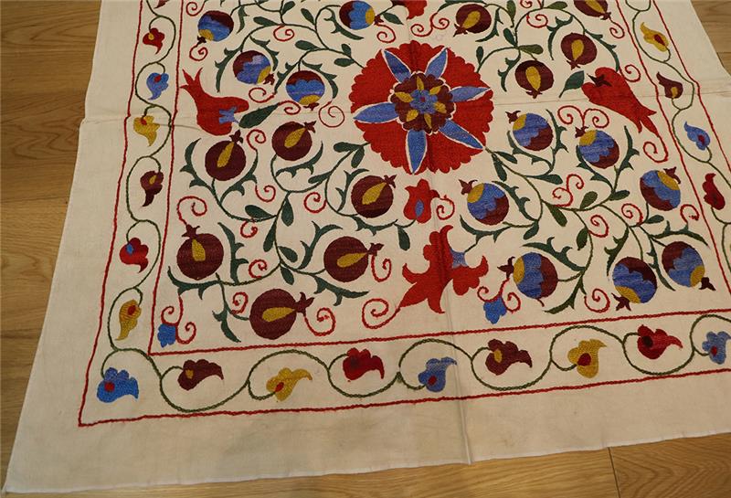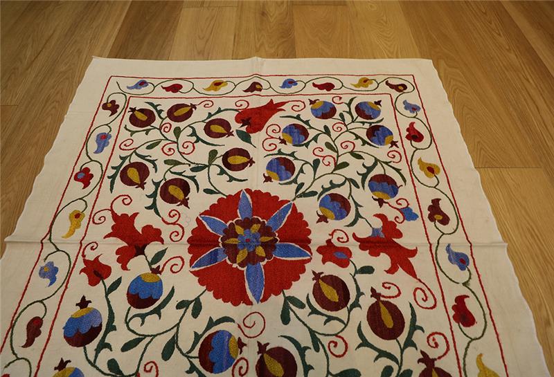 We are happy to bring you the latest and modern Uzbek suzanis at competitive prices. Our suzanis are genuine folk art, stitched by hand in the ancient traditional motif. You can use them as a cover for the bed and they can bring colour and texture to any environment. Suzani make delightful wall hangings, bedspreads, furniture throws, pillows, and even tablecloths.