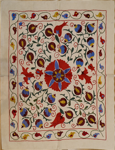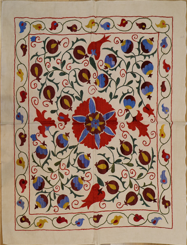 Hand Embroidered Silk Suzani - specifically, the exquisite silk yarn embroidery panels made by Uzbek masters. Traditionally this embroidery work should begin a mother once a daughter is born, and is continuing with the help of family and friends until the bride's dowry was complete.