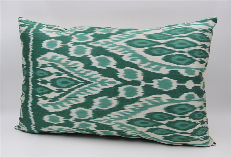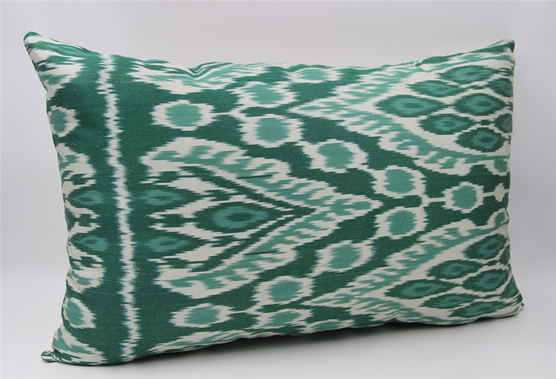 This pillow made from Hand loomed Silk Uzbekistan Ikat fabric. Hand woven Designer ikat throw pillow cover to decorate your luxurious penthouse apartment, infuse so sweet, quite, sooth sleep after hard working day. It can brighten up any old sofa or armchair. Back side is cotton fabric with hidden zipper.