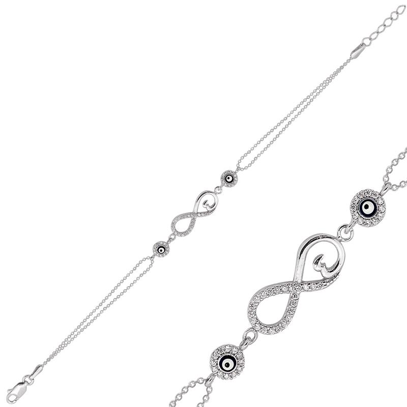 Silver Infinity Women's BraceletOne of the most beautiful and meaningful ways to express eternal love to your loved one is with an infinity bracelet. With its stylish design, you can express your eternal love to your beloved with this special bracelet model and send the message that you will be together forever. This beloved and elegant model is perfect for a birthday gift, Valentine's Day gift, or a gift for mothers on special occasions. The silver infinity women's bracelet is made of 925 sterling silver. The silver is rhodium-plated. Rhodium-plated silver women's bracelet preserves its shine for a long time and delays oxidation. Like all silver women's bracelet models, this silver infinity women's bracelet is entirely handmade. Due to the silver and precious stones, there may be a ± 10% deviation from the average product weight.Average Weight: 2.70 gr.