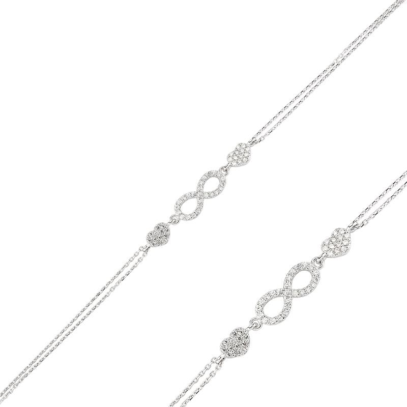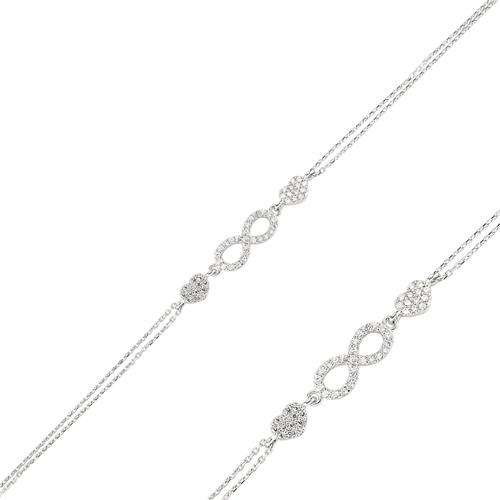 Silver Infinity Women's BraceletOne of the most beautiful and meaningful ways to express eternal love to your loved one is of course the infinity symbol. With this meaningful silver bracelet that you will gift your loved one, you can express your eternal love and affection and give the message that you will be together forever. The infinity bracelet is made of 925 sterling silver. Rhodium plated silver. Rhodium plated products preserve their shine for a long time and oxidation is delayed. The stones on the silver infinity women's bracelet are zircon. As with all women's bracelets, the entire infinity women's bracelet is handmade. Due to silver and precious stones, there may be a ± 10% deviation in the average product weight.Average Weight: 3.00 gr.