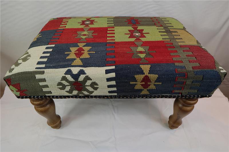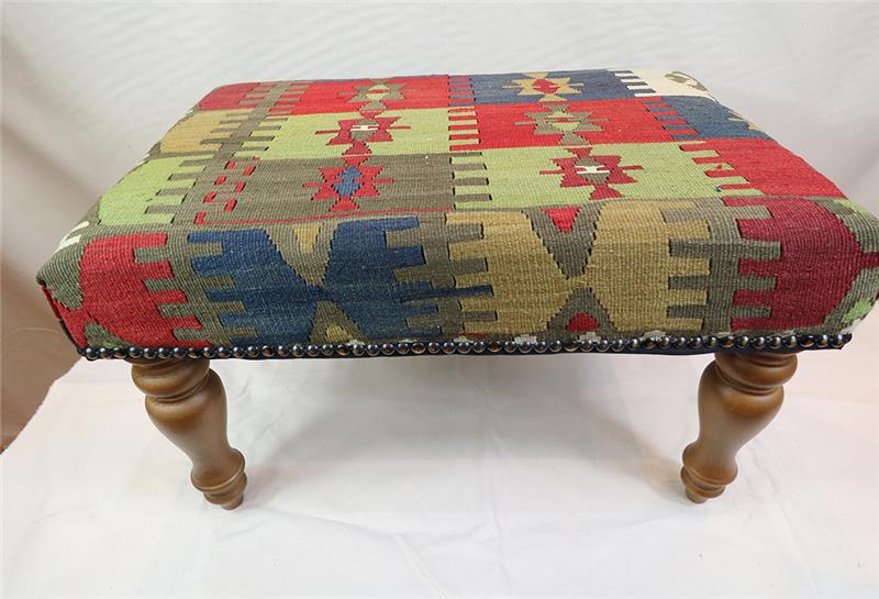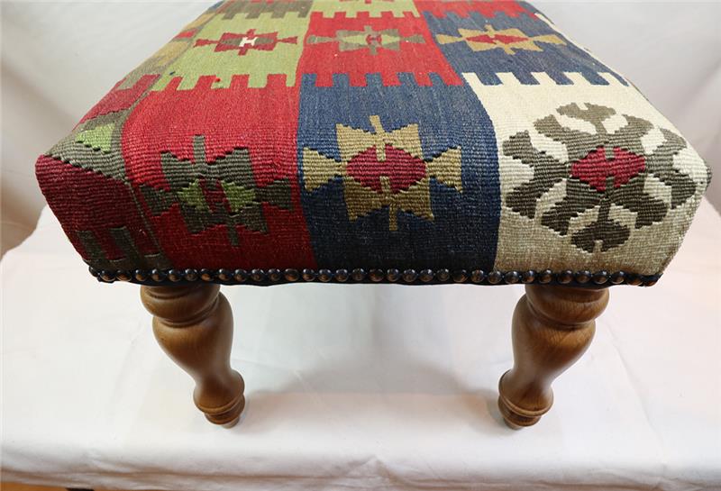 Kilim Furniture can be made to order according to the requirement of the client. They can choose the rugs from the hundreds of varieties with which to upholster the stools. As each piece of kilim is unique both in the sense of colour combinations and the designs woven into it, you can rest assured that the Kilim Footstools would be a prized possession among your Kilim Tables lending elegance and style.