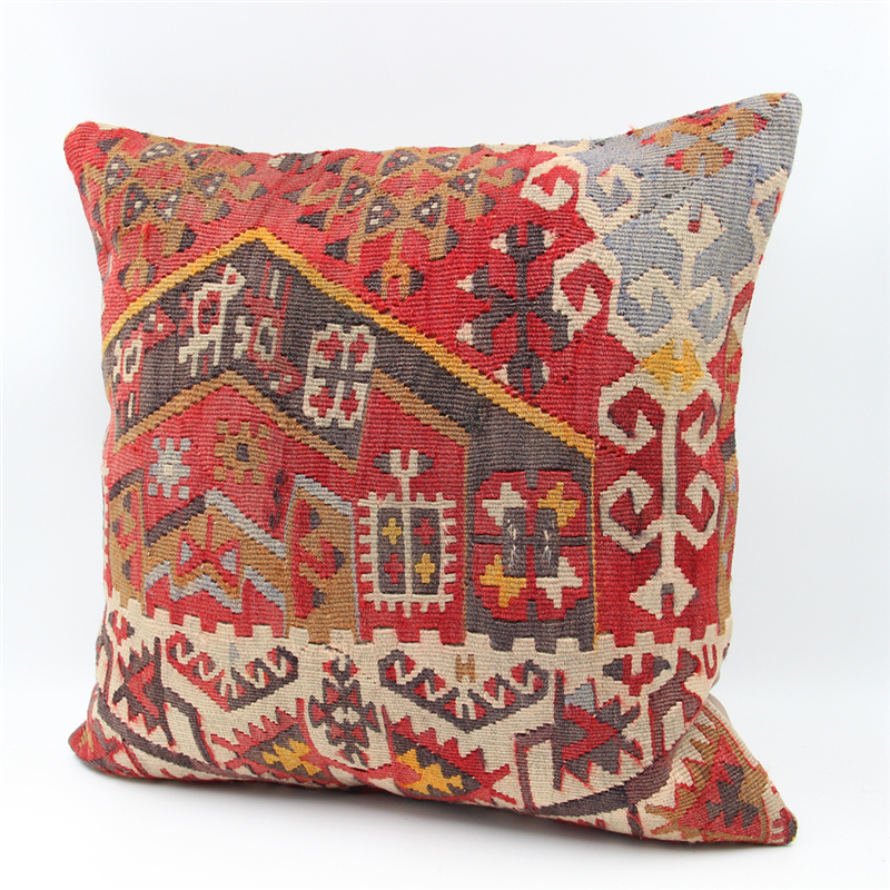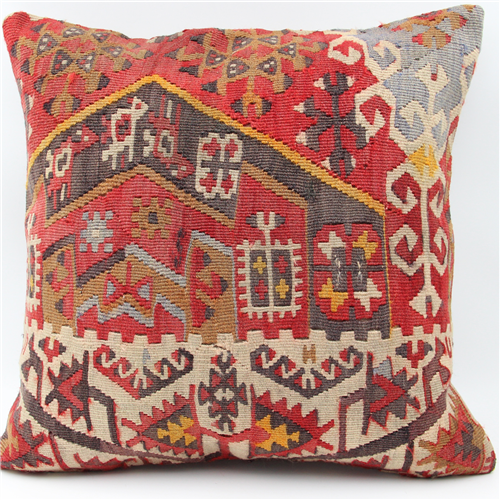 Kilims used in our products are old and genuine. These Kilim Cushions are made with pieces of carpets and kilims joined to make Kilim Cushion Covers. Kilim Cushion Covers can be made for order for any size. Back has cotton with a zipper.