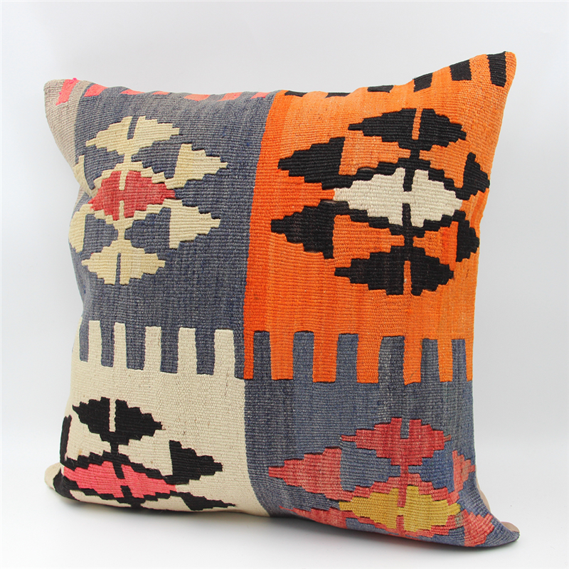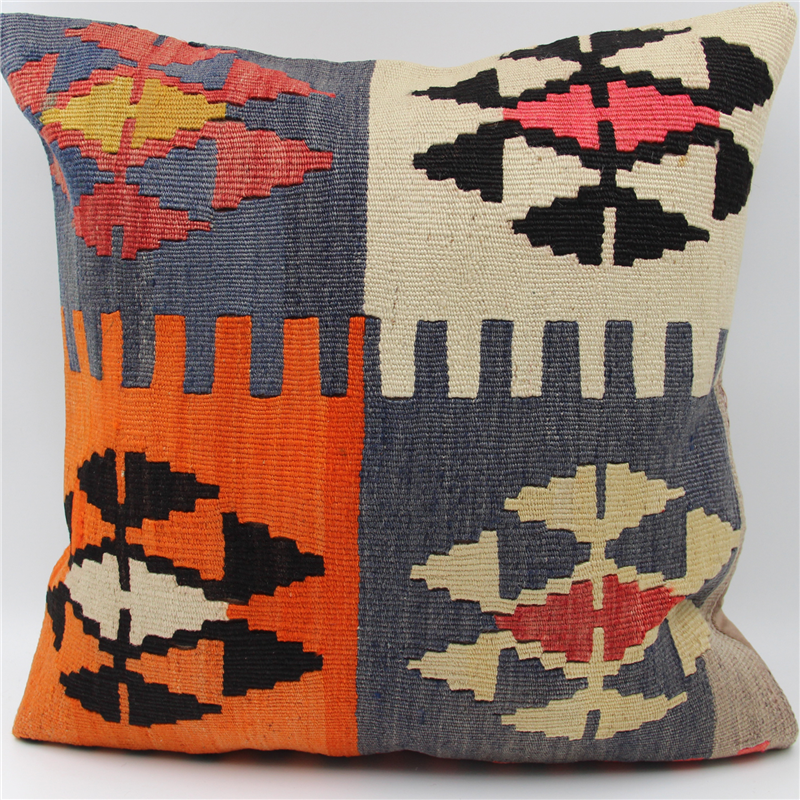 Kilims used in our products are old and genuine. These Kilim Cushions are made with pieces of carpets and kilims joined to make Kilim Cushion Covers. Kilim Pillow Covers can be made for order for any size. Back has cotton with a zipper.