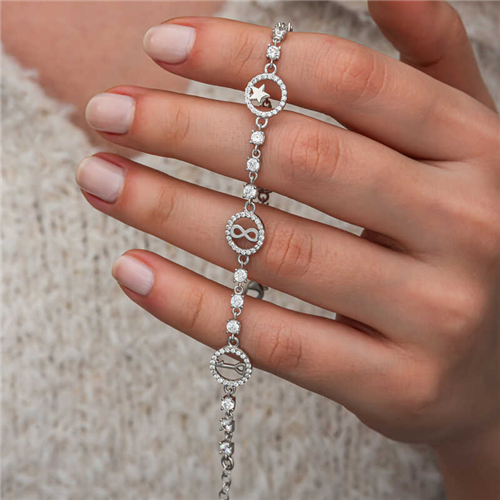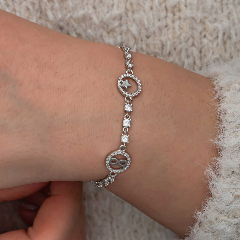 Luck in a Silver Hoop Women's Bracelet One of the most stylish models you can buy to bring luck to your loved ones is the silver luck bracelet. This stylish bracelet is a perfect option for a birthday gift, Valentine's Day gift or a gift for mothers on special occasions. The bracelet is made of 925 sterling silver. Rhodium plated on silver. Rhodium-plated products preserve their shine for a long time and oxidation is delayed. As with all silver bracelets, this silver rhodium luck women's bracelet is entirely handmade. Due to silver and precious stones, there may be ± 10% deviation in the average product weight. Width: 1 cm Bracelet Length: 21 cm Avg. Weight: 6.00 gr.
