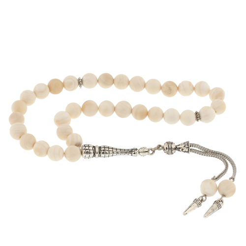 Natural Stone Metal Tasseled Mother-of-Pearl Stone Prayer Beads Mother-of-pearl, which draws attention with its dazzling, sparkling beauty as well as its countless benefits, has been used extensively in accessories and ornaments from past to present. You can choose mother-of-pearl stone accessory models for both yourself and your loved ones and benefit from their benefits. Mother-of-pearl is a stone that is very effective on a person's physical and mental health. For this reason, you can benefit from these benefits by making sure to include mother-of-pearl in the accessories you choose. You can be both stylish and benefit from its positive effects on your health with dazzling mother-of-pearl stone necklace designs designed and produced with Elmas İş quality. This precious stone is a perfect option for birthday gifts, Father's Day or special occasions. The prayer beads are handmade. Due to silver and precious stones, there may be ± 10% deviation in the specified product weight. Length: 25.50 cm Grain Length: 0.90 cm Average Weight: 36.50 gr