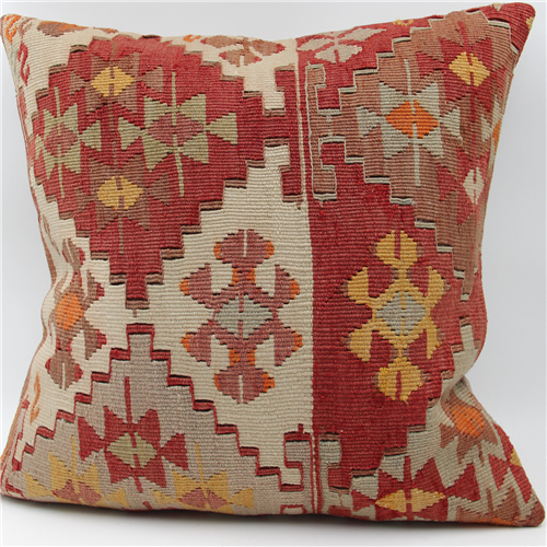 Kilims used in our products are old and genuine. These Kilim Cushions are made with pieces of carpets and kilims joined to make Kilim Cushion Covers. Kilim Cushion Covers can be made for order for any size. Back has cotton with a zipper