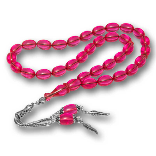 Pink Fire Amber Prayer Beads with Silver Tassels An elegant and stylish prayer beads specially designed for valuable collectors and religious uses. Made with the natural beauty and energy of Pink Fire Amber stones, this prayer beads stands out with both its aesthetic and spiritual values. Completed with silver tassels and details, this product is an ideal choice for Sufis and design enthusiasts. Amber is fossilized tree resin found in nature and is known for its energy-balancing and healing properties. Pink amber, in particular, symbolizes love, compassion, and emotional balance. It creates positive effects on the heart chakra, increasing inner peace and loving energy. This beautiful prayer bead that will accompany you in your daily use and complete your special moments is a meaningful gift option for yourself or your loved one. The squeezed amber prayer bead model is entirely handmade like other amber prayer bead models. Note: The silver tassel ends of the prayer bead are sent in different models. Bead Width: 0.80 cm Bead Length: 1.00 cm Prayer Length: 30 cm Average Weight: 22.50 gr
