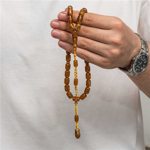 Pressed Amber Prayer Beads Amber is a substance formed by the accumulation of pine tree resin underground over many years. It is almost as hard as stone, but its density is lower. It emits a pine scent. Because its formation takes a long time and cannot be made artificially, it is a valuable substance. Pressed amber, however, is a material that shares its characteristics and resembles it in appearance, but is not real. Various materials have been produced from amber in our country and in many parts of the world. Prayer beads are the most commonly produced in our country. Amber prayer beads give off an amber-like scent and change color as they warm in the hand. They come in many colors. There are even amber prayer beads that are a combination of two colors. Our country's distinguished prayer beads masters frequently process this material to create various works of art. These prayer beads are bought and sold by collectors. The squeezed amber prayer beads model is a very elegant type of prayer beads that can be used in daily life. An indispensable gift for special occasions, squeezed amber prayer beads can be preferred as gifts for men on special occasions such as birthdays, Valentine's Day and Father's Day. The squeezed amber prayer beads model, like other amber prayer beads models, is entirely handmade. Bead Width: 0.80 cm Bead Length: 1.00 cm Prayer Length: 35 cm Average Weight: 28 gr