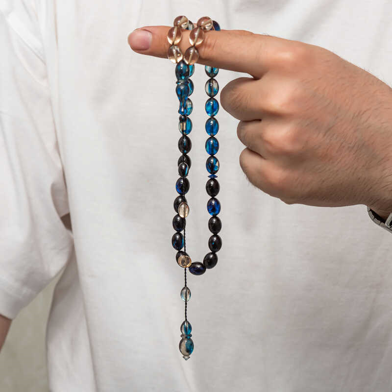Pressed Amber Prayer Beads Amber is a substance formed by the accumulation of pine tree resin underground over many years. It is almost as hard as stone, but its density is lower. It emits a pine scent. Because its formation takes a long time and cannot be made artificially, it is a valuable substance. Pressed amber, however, is a material that shares its characteristics and resembles it in appearance, but is not real. Various materials have been produced from amber in our country and in many parts of the world. Prayer beads are the most commonly produced in our country. Amber prayer beads give off an amber-like scent and change color as they warm in the hand. They come in many colors. There are even amber prayer beads that are a combination of two colors. Our country's distinguished prayer beads masters frequently process this material to create various works of art. These prayer beads are bought and sold by collectors. The squeezed amber prayer beads model is a very elegant type of prayer beads that can be used in daily life. An indispensable gift for special occasions, squeezed amber prayer beads can be preferred as gifts for men on special occasions such as birthdays, Valentine's Day and Father's Day. The squeezed amber prayer beads model, like other amber prayer beads models, is entirely handmade. Bead Width: 0.80 cm Bead Length: 1.00 cm Prayer Length: 33 cm Average Weight: 18 g