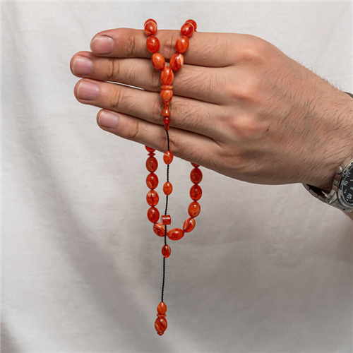 Pressed Amber Prayer Beads Amber is a substance formed by the accumulation of pine tree resin underground over many years. It is almost as hard as stone, but its density is lower. It emits a pine scent. Because its formation takes a long time and cannot be made artificially, it is a valuable substance. Pressed amber, however, is a material that shares its characteristics and resembles it in appearance, but is not real. Various materials have been produced from amber in our country and in many parts of the world. Prayer beads are the most commonly produced in our country. Amber prayer beads give off an amber-like scent and change color as they warm in the hand. They come in many colors. There are even amber prayer beads that are a combination of two colors. Our country's distinguished prayer beads masters frequently process this material to create various works of art. These prayer beads are bought and sold by collectors. The squeezed amber prayer beads model is a very elegant type of prayer beads that can be used in daily life. An indispensable gift for special occasions, squeezed amber prayer beads can be preferred as gifts for men on special occasions such as birthdays, Valentine's Day and Father's Day. The squeezed amber prayer beads model, like other amber prayer beads models, is entirely handmade. Bead Width: 0.80 cm Bead Length: 1.00 cm Prayer Length: 33 cm Average Weight: 18 g