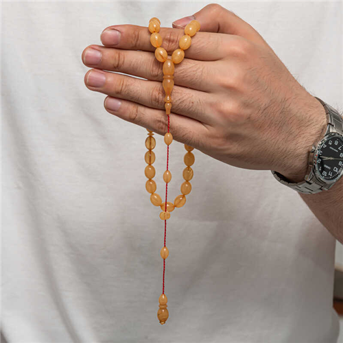 Pressed Amber Prayer Beads Amber is a substance formed by the accumulation of pine tree resin underground over many years. It is almost as hard as stone, but its density is lower. It emits a pine scent. Because its formation takes a long time and cannot be made artificially, it is a valuable substance. Pressed amber, however, is a material that shares its characteristics and resembles it in appearance, but is not real. Various materials have been produced from amber in our country and in many parts of the world. Prayer beads are the most commonly produced in our country. Amber prayer beads give off an amber-like scent and change color as they warm in the hand. They come in many colors. There are even amber prayer beads that are a combination of two colors. Our country's distinguished prayer beads masters frequently process this material to create various works of art. These prayer beads are bought and sold by collectors. The squeezed amber prayer beads model is a very elegant type of prayer beads that can be used in daily life. An indispensable gift for special occasions, squeezed amber prayer beads can be preferred as gifts for men on special occasions such as birthdays, Valentine's Day and Father's Day. The squeezed amber prayer beads model, like other amber prayer beads models, is entirely handmade. Bead Width: 0.80 cm Bead Length: 1.00 cm Prayer Length: 33 cm Average Weight: 18 g