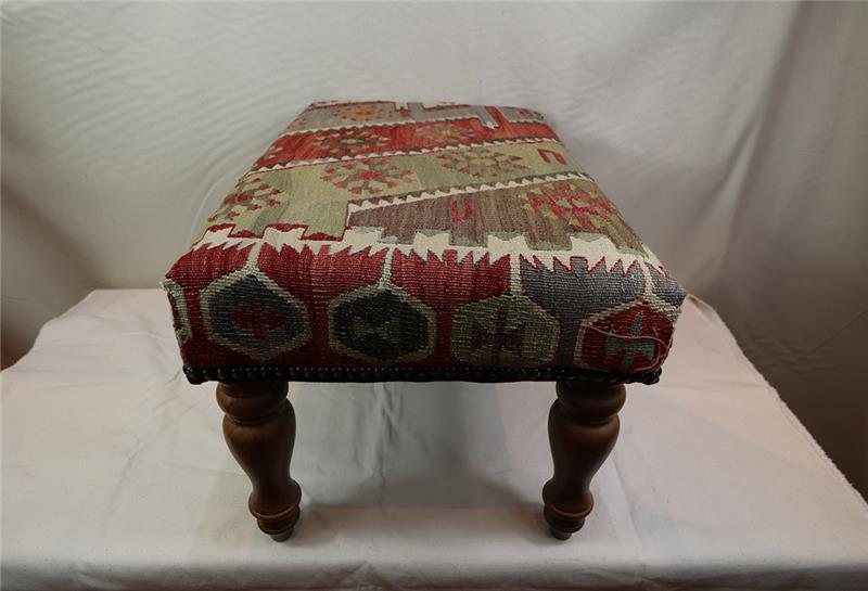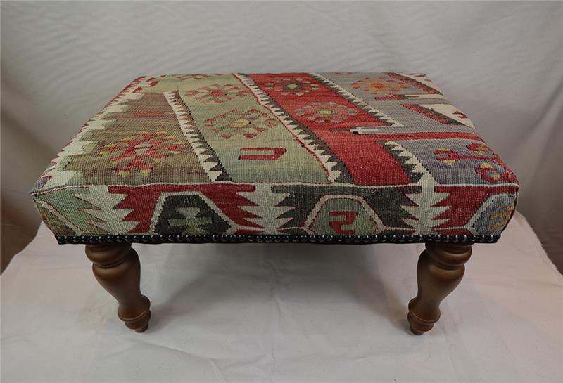 Kilim Furniture can be made to order according to the requirement of the client. They can choose the rugs from the hundreds of varieties with which to upholster the stools. As each piece of kilim is unique both in the sense of colour combinations and the designs woven into it, you can rest assured that the Kilim Footstools would be a prized possession among your Kilim Tables lending elegance and style.