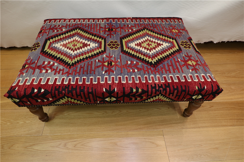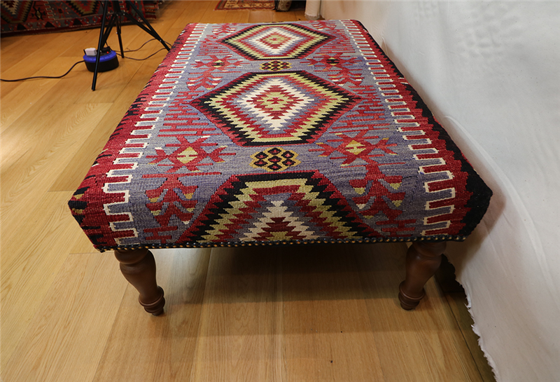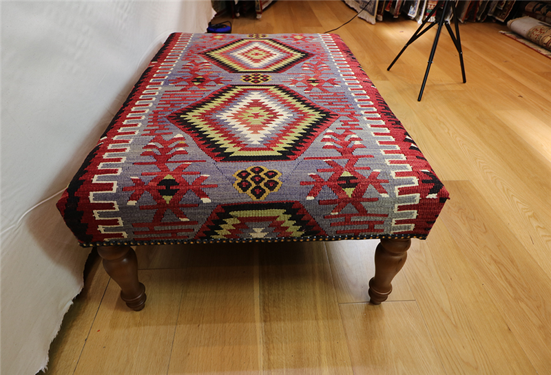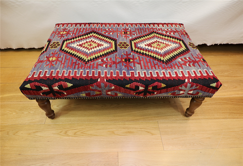 Kilim Furniture can be made to order according to the requirement of the client. They can choose the rugs from the hundreds of varieties with which to upholster the stools. As each piece of kilim is unique both in the sense of colour combinations and the designs woven into it, you can rest assured that the Kilim Footstools would be a prized possession among your Kilim Tables lending elegance and style.