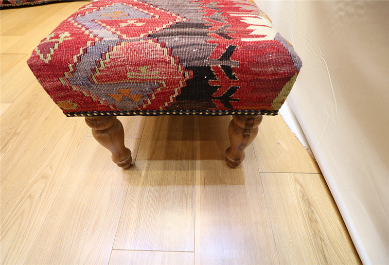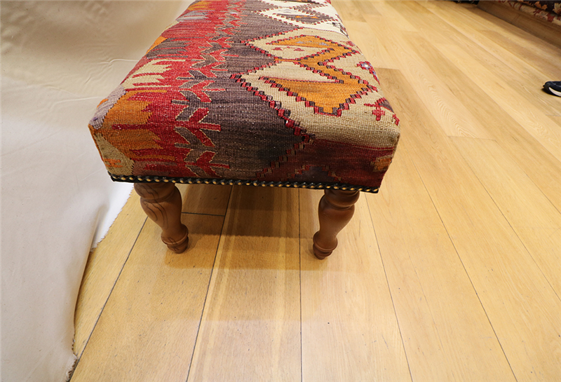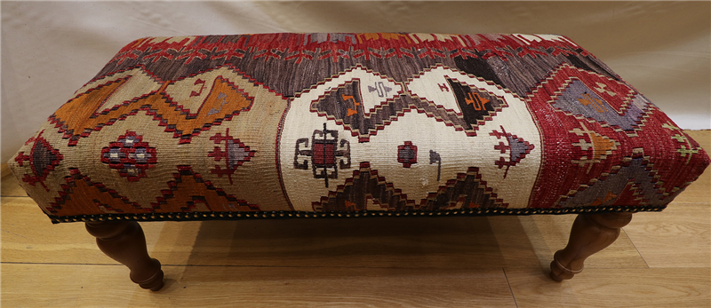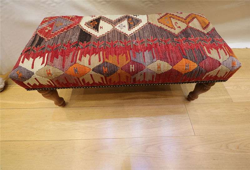 Kilim Furniture can be made to order according to the requirement of the client. They can choose the rugs from the hundreds of varieties with which to upholster the stools. As each piece of kilim is unique both in the sense of colour combinations and the designs woven into it, you can rest assured that the Kilim Footstools would be a prized possession among your Kilim Tables lending elegance and style.