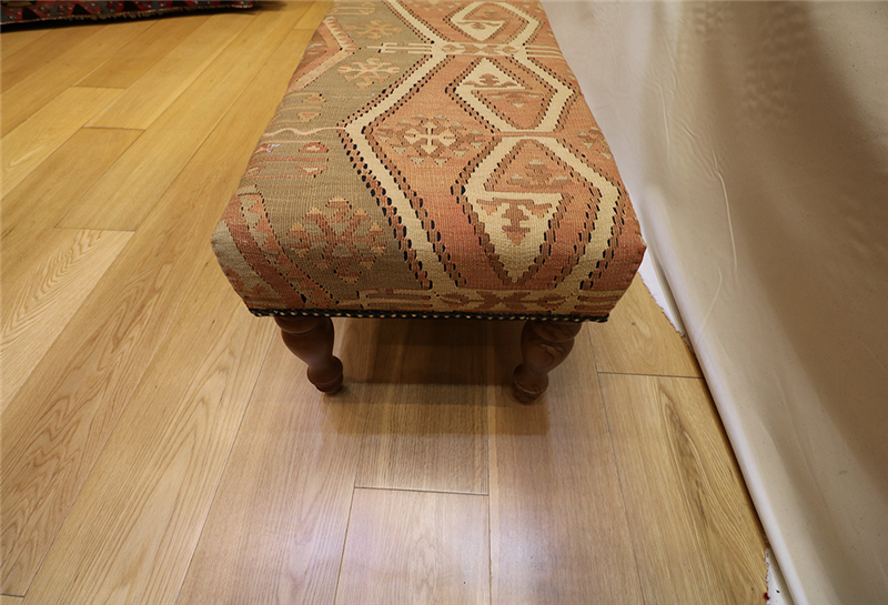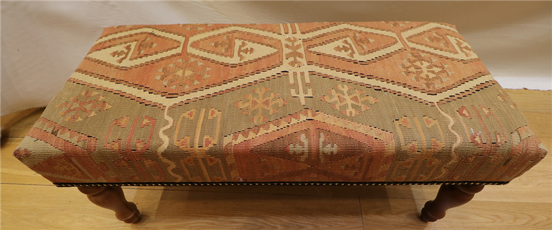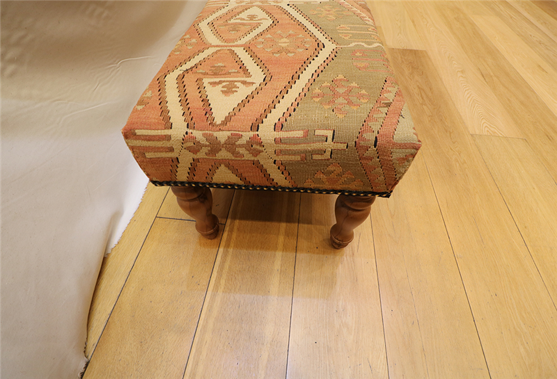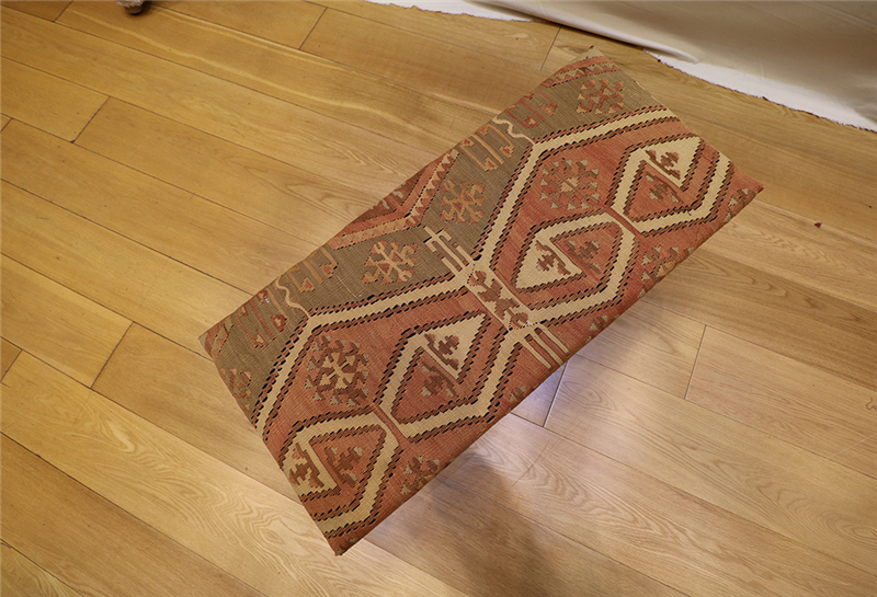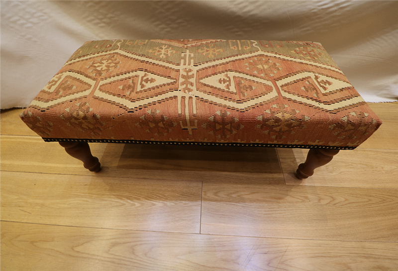 Kilim Furniture can be made to order according to the requirement of the client. They can choose the rugs from the hundreds of varieties with which to upholster the stools. As each piece of kilim is unique both in the sense of colour combinations and the designs woven into it, you can rest assured that the Kilim Footstools would be a prized possession among your Kilim Tables lending elegance and style.