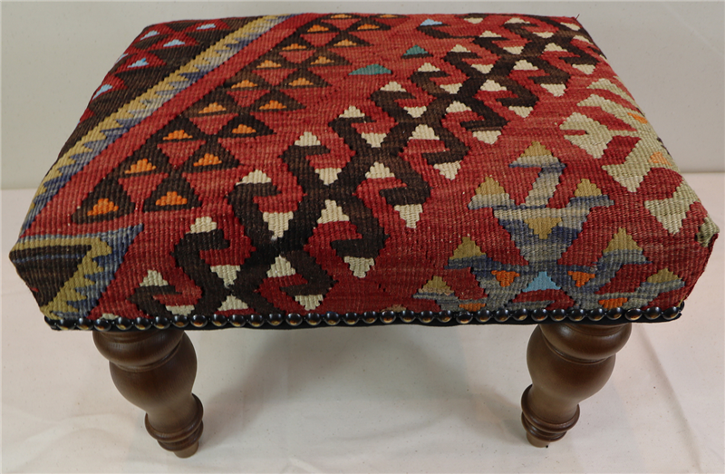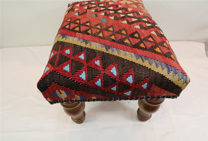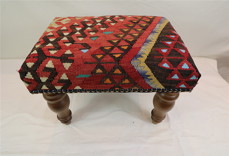 Kilim Furniture can be made to order according to the requirement of the client. They can choose the rugs from the hundreds of varieties with which to upholster the stools. As each piece of kilim is unique both in the sense of colour combinations and the designs woven into it, you can rest assured that the Kilim Footstools would be a prized possession among your Kilim Tables lending elegance and style.