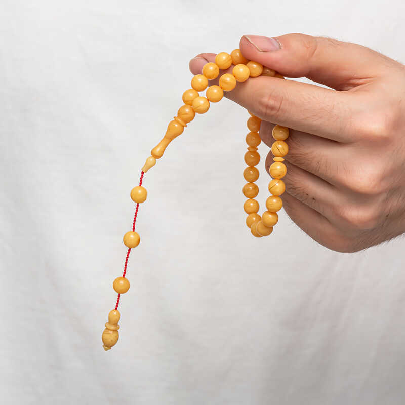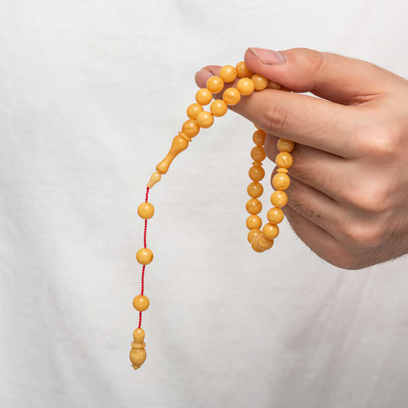 Round Pressed Amber Prayer Beads Amber is a substance formed by the accumulation of pine tree resin underground over many years. It is almost the same hardness as stone, but its density is lower. It emits a pine scent. It is a valuable substance because its formation takes a long time and cannot be made artificially. Pressed amber, however, is a material that shares its characteristics and resembles it in appearance, but is not real. Various materials have been produced from amber in our country and in many parts of the world. Prayer beads are the most commonly produced in our country. Amber prayer beads give off an amber-like scent and change color as they are heated in the hand. They come in many colors. There are even amber prayer beads that are a combination of two colors. Our country's distinguished prayer beads masters frequently process this material to create various works of art. These prayer beads are also bought and sold by collectors. The squeezed amber prayer beads are a very elegant type of prayer beads that can be used in daily life. An indispensable gift for special occasions, squeezed amber prayer beads are ideal as gifts for men on special occasions such as birthdays, Valentine's Day, and Father's Day. The squeezed amber prayer beads, like other amber prayer beads, are entirely handmade. Bead Width: 0.80 cm Bead Length: 0.80 cm Prayer Length: 25 cm Average Weight: 14 g