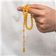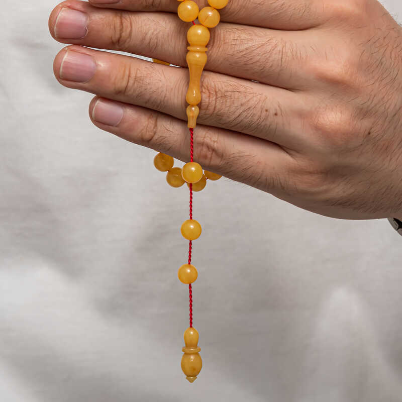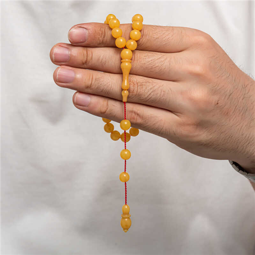 Round Pressed Amber Prayer Beads Amber is a substance formed by the accumulation of pine tree resin underground over many years. It is almost the same hardness as stone, but its density is lower. It emits a pine scent. It is a valuable substance because its formation takes a long time and cannot be made artificially. Pressed amber, however, is a material that shares its characteristics and resembles it in appearance, but is not real. Various materials have been produced from amber in our country and in many parts of the world. Prayer beads are the most commonly produced in our country. Amber prayer beads give off an amber-like scent and change color as they are heated in the hand. They come in many colors. There are even amber prayer beads that are a combination of two colors. Our country's distinguished prayer beads masters frequently process this material to create various works of art. These prayer beads are also bought and sold by collectors. The squeezed amber prayer beads are a very elegant type of prayer beads that can be used in daily life. An indispensable gift for special occasions, squeezed amber prayer beads are ideal as gifts for men on special occasions such as birthdays, Valentine's Day, and Father's Day. The squeezed amber prayer beads, like other amber prayer beads, are entirely handmade. Bead Width: 0.80 cm Bead Length: 0.80 cm Prayer Length: 25 cm Average Weight: 14 g