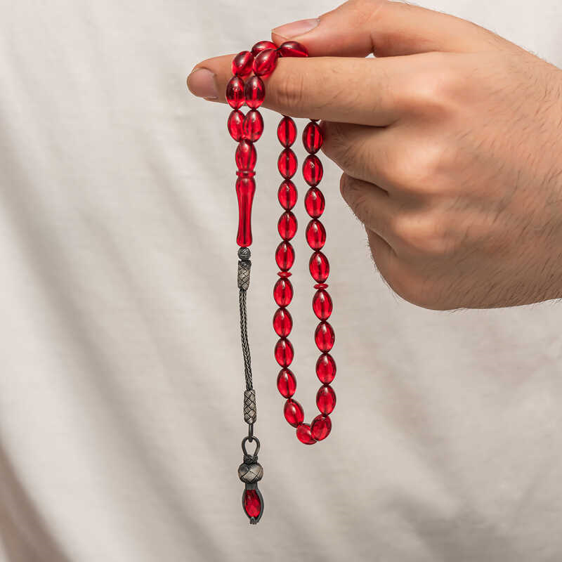 Silver 1000 Carat Kazaz Tassel Pressed Amber Prayer Beads Amber is a substance formed by the accumulation of pine tree resin underground over many years. It is almost the same hardness as stone, but its density is lower. It emits a pine scent. It is a valuable substance because its formation takes a long time and cannot be made artificially. Pressed amber, on the other hand, is a material that bears the characteristics of amber, resembles it in appearance but is not real. Various materials have been produced from amber in our country and in many parts of the world. Prayer beads are the most commonly produced prayer beads in our country. Amber prayer beads give off an amber-like scent and change color as they are warmed in the hand. They come in many colors. There are even amber prayer beads that are a combination of two colors. They are usually used with a silver tassel or can be used systematically. Our country's distinguished rosary masters frequently craft this material to create various works of art. These rosaries are also bought and sold by collectors. The 1000-karat silver-plated amber rosary with a tassel is a very elegant rosary suitable for everyday use. A must-have gift for special occasions, these amber rosaries are a perfect gift for men on special occasions like birthdays, Valentine's Day, and Father's Day. The silver tasseled squeezed amber prayer beads model is manufactured entirely by hand like other amber prayer beads models. Bead Width: 0.80 cm Bead Length: 1.00 cm Prayer Length: 32 cm Average Weight: 16.75 gr