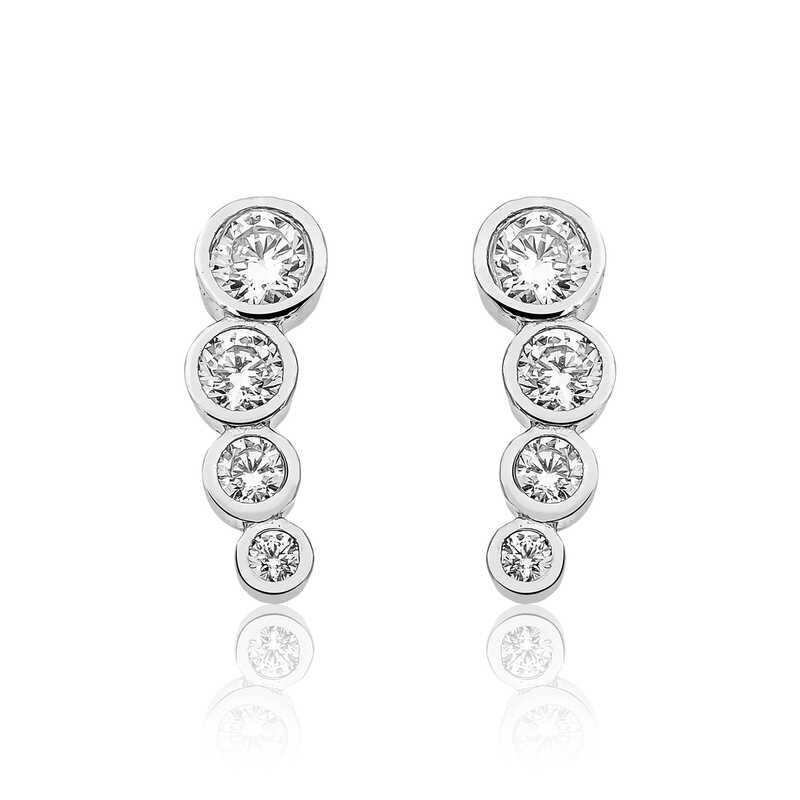 Silver 4 Stone Women's Earrings You will shine with these four stone women's earrings that will accompany you on your special days and give you a stylish look. Silver four stone women's earrings are made of 925 sterling silver. Rhodium plated silver women's earrings preserve their shine for a long time and oxidation is delayed. The stones on the earrings are zircon. This stylishly designed silver four stone women's earrings is handmade. Due to silver and precious stones, there may be ± 10% deviation from the average product weight. Width: 0.40 cm Length: 1.20 cm Average Weight: 1.20 gr.