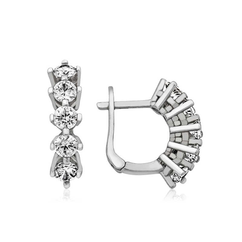 Silver 5-Stone EarringsFive-stone models are quite showy jewelry. They are one of the most preferred models among multi-stone earrings. Each stone has a meaning. They generally represent love, loyalty, peace, happiness, and abundance. They are perfect for the fifth anniversary of your relationship. For those looking for the most suitable gift for special occasions such as anniversaries, Valentine's Day, birthdays, and for those who want to experience the elegance of five-stone earrings, unique models are waiting for you. Five-stone women's earrings are made of 925 sterling silver. Rhodium plated silver. Rhodium plated silver five-stone earrings preserve their shine for a long time and delay oxidation. The white stones on the earrings are zircon. All of the silver women's earrings are handmade. Due to silver and precious stones, there may be a ± 10% deviation in the average product weight.Width: 1.70 cmLength: 0.50 cmAverage Weight: 3.72 gr.