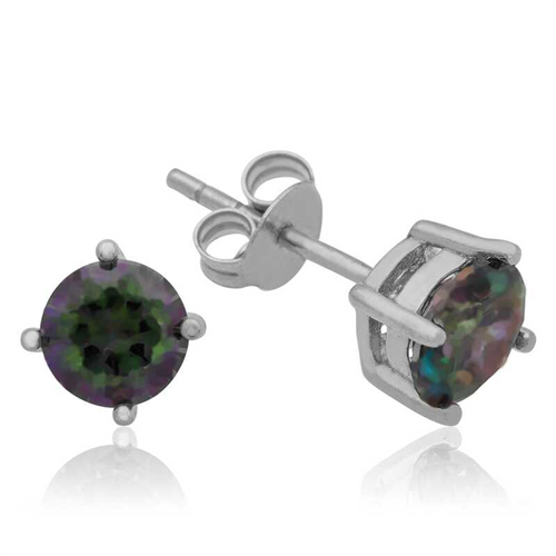 Silver 6 mm Mystic Topaz Stud Earrings Solitaire earring models and sparkling options that reflect the infinite light of silver and topaz stone will add a unique light to your elegance. A wide range of stylish earring models, from modern to classic, have been prepared for you and your loved ones. Earrings are made of 925 sterling silver. Rhodium plated on silver. All of our products are handmade. Due to silver and precious stones, there may be ± 10% deviation from the average product weight. Width: 0.60 cm Length: 1.40 cm Average Weight: 1.80 gr.