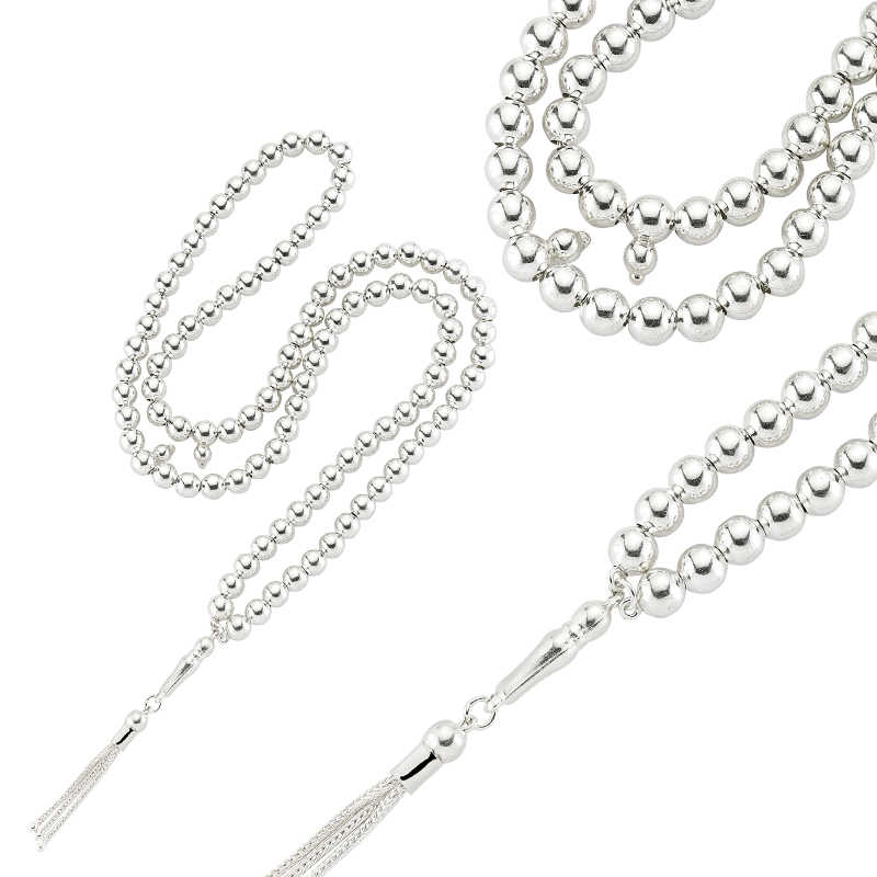 Silver 99s Prayer Beads This stylish prayer beads are made of 1000 carat silver. It has been coated with extra silver. Prayer beads made with this coating preserve their shine for a long time and oxidation is delayed. You can enjoy using the silver 99s prayer beads and choose them as a gift for birthdays, Valentine's Day, Father's Day or special occasions. All of our products are handmade. Due to silver and precious stones, there may be ± 10% deviation in the average product weight. Prayer Barley Width: 0.50 cm Prayer Barley Length: 0.50 cm Prayer Length: 38.50 cm Average Weight: 42 gr