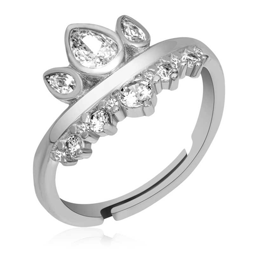 Silver Adjustable Queen's Crown Women's RingHow about telling your loved ones that they are the crown of your head? Inspired by the elegance of the queen's crown, you can choose this stylish ring in everyday life, on special occasions and nights, and you can love wearing this ring model that reminds you of stars with its sparkling stones. This silver ring model is waiting for you for all women who want to achieve a stylish look. Silver queen's crown ring is a perfect option for special occasions such as birthday gifts or Valentine's Day gifts. This ring model is made of 925 sterling silver. Rhodium plated on the silver. Rhodium plated silver women's rings preserve their shine for a long time and delay tarnishing. Like all silver ring models, the silver queen's crown ring model is produced entirely by hand. Due to silver and precious stones, there may be a ± 10% deviation in the average product weight.Ring Width: 2.10 cmRing Length: 2.20 cmAverage Weight: 3.80 gr.