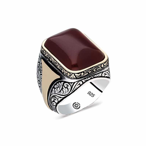 Silver Agate Stone Square Men's RingThis men's ring model made of agate stone on silver is a stylish accessory that you can use at any time of the day. You can gift this ring to yourself or your loved ones on your birthday, Father's Day or special occasions. The agate stone men's ring model is made of 925 sterling silver. Oxide coating is applied to the silver. Oxide coating preserves its shine for a long time. Like all men's rings, the silver agate stone men's ring model is handmade. Due to silver and precious stones, there may be a ± 10% deviation from the average product weight.Average Weight: 17.00 gr.