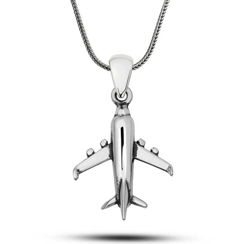 Silver Airplane Necklace With silver airplane necklaces, your precious ones are always with you... A silver airplane necklace that you and your loved ones will enjoy wearing will be one of the most meaningful gifts. This silver airplane necklace model that you and your loved ones will enjoy wearing will be one of the best gifts. The airplane necklace model is made of 925 sterling silver. Oxidized silver is coated. Oxidized silver necklace models preserve their shine for a long time and tarnishing is delayed. The length of the silver necklace is 55 cm. Like all necklace models, the silver airplane necklace model is also produced by hand. Due to silver and precious stones, there may be ± 10% deviation in the average product weight. Width: 2.60 cm Length: 1.90 cm Average Weight: 9.40 gr Chain length: 55 cm